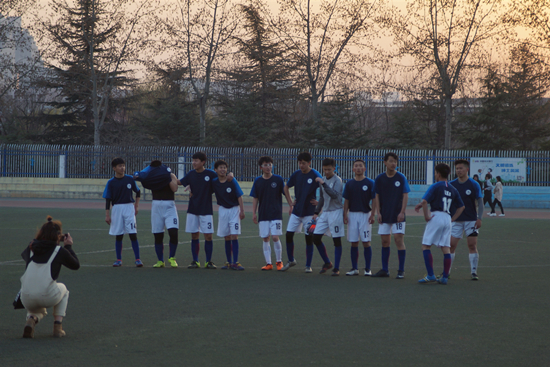 比赛开始前,双方队员们互相击掌致敬,这是一场友谊第一比赛第二的足球赛。随着裁判一声哨响,比赛开始,数学学院的前锋首先控球,向着生物学院一方的球门推进,生物学院的球员们积极防御,双方球员快速的奔跑着,不断的变换自己的位置,最终,生物学院的守门员挡下了数学学院中锋的射门。数学学院的队员们也没有气馁,继续回到了自己的位置,准备着下一轮的进攻。恰逢初春,风还有些凉意,队员们像风一样在球场上驰骋,他们用汗水在球场上谱写着属于自己的荣耀。比赛进入了白热化阶段,双方实力差距逐渐显现。最终,数学学院惜败于生物学院。赛后,双方球员友好道别,约定今后有时间一定要再比一场。