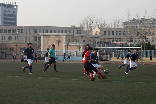 赛前,双方队员们都在积极的进行热身,为即将开始的比赛做充分的准备。这场比赛球员们都贯彻友谊第一比赛第二的原则,双方球员在赛场上展开公平而又激烈的竞争。比赛上半场,美术学院通过变换阵型,后卫变前锋的战术,抓住了数学学院队员们防御的空档,率先进一球,取得了一分的优势。气氛变得紧张起来,比赛进行到下半场,数学学院的队员积极防御,寻找美术学院队员的防御空挡,一部分队员也积极进攻,运用多人运球强压的战术踢进一球,追平了比分。比分的追平,使比赛变得更加激烈,双方球员都加强了防御,并伺机寻找对方的空档。他们在球场上驰骋,他们挥汗如雨,不知疲倦,他们誓要取得比赛的胜利,他们是为青春而战!青春的激昂本色在他们身上展现的淋漓尽致!无论输赢,他们都会是被人尊敬的英雄!最终,比分定格在一比一,这张激烈的比赛以平局结尾,双方队员友好道别。