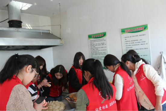 几经周转,志愿者们终于到达于河街道敬老院。敬老院负责人先向志愿者们介绍了敬老院的基本情况,紧接着,敬老院负责人带领志愿者们参观了敬老院并向他们介绍了这些老人们的来历,敬老院大部分老人都是空巢老人,家中无子女,生活得不到自理。敬老院负责人还向志愿者们传授了如何打理好卫生、如何与老人交谈等许多经验,让志愿者们受益匪浅。然后,在敬老院负责人的安排下,志愿者们有条不紊地开始进行包饺子的工作,积极投入到关爱老人的活动中。一部分同学负责擀皮,另一部分同学负责包饺子,在敬老院工作人员的帮助下,同学们很快地完成了包饺子的工作。活动结束后,志愿者们与老人们相互道别。