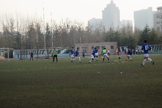 比赛开始前,双方队员都有条不紊地准备着接下来的比赛,先是双方队员进行热身运动,提高比赛后续状态。而后双方队员围聚为自己的队伍加油打气。随着裁判的一声哨响,比赛拉开了帷幕。伴随着温和的阳光,赛场上的运动员们分分必争,迈着矫健的步伐,飞快的奔跑抢球。队员们的球技都非常优秀,比赛一开始便不相上下。在最后的时间中,虽然队员们都有较好的体力,但因为经历了长时间的比赛,都有些疲劳。但并没有人放弃,更没有人退缩。对队员们来说,这已经不仅仅是一场足球比赛,更是为自己人生增光添彩的一笔。咬紧牙关,努力进攻,不畏对手,坚韧防卫。这种不抛弃不放弃的精神是值得同学们去学习的。最后体育学院发起攻势,数学学院惜败比赛。比赛第一,友谊第二,在场的每一位队员都值得尊敬。