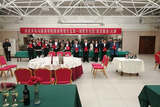 3月28日下午,历史文化与旅游学院举办了旅游管理专业第一届服务技能(饭店服务)大赛。出席本次大赛的嘉宾有富华大酒店经理董元园、王振玲,该院党总支书记于云汉、党总支副书记李晓静、副院长秦瑞鸿、部分辅导员和任课老师。该院旅游管理部分同学参加。