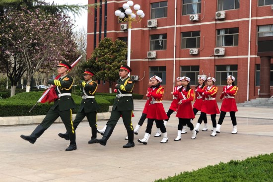 早上7:30,主持人宣布升旗仪式正式开始。雄壮的国歌之中,五星红旗冉冉升起,全体师生行注目礼、奏唱国歌。随后,张乐宁同学讲到:作为时代的社会建设者,在鲜艳的五星红旗下,我们应怀着一颗感恩的心,去缅怀英雄。历史的长河记载了多少英雄的事迹,革命先烈把对人民群众的爱化为搏杀敌人的精神力量,不怕牺牲,勇往直前,建立起人民当家做主的新中国。今天,我们不仅要纪念他们,还要学习他们追求自由、追求和平、不怕吃苦、不怕牺牲的革命精神!我们既要珍惜革命先烈用鲜血和生命换来的社会安定团结、经济持续增长、人民安居乐业的美好生活,更要树立正确的世界观、人生观、价值观,以自己的实际行动告慰烈士。