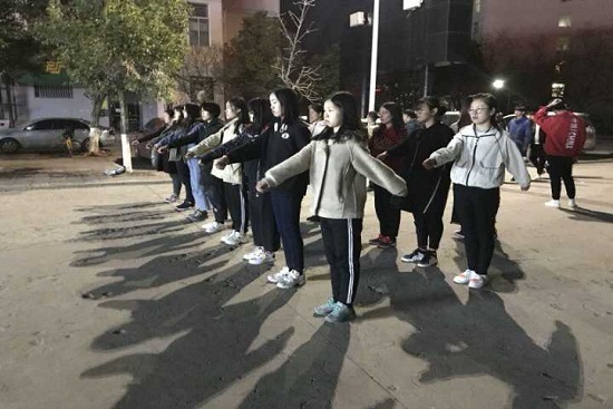 运动会方阵训练定于每晚晚自习期间举行,学生抽出学习的时间刻苦训练。在学校的外环路上、樱花西路上映刻着学生们训练的足迹,面对来往的车辆与行人,面对路人好奇的眼光,他们无动于衷,坚持站好每一个军姿、转好每一个转体。国旗护卫队的学生尽心尽力地指导,指正每一位学生的错误,与参加训练的同学做好沟通,针对不同的参训人员采用不同的训练方法。参与训练的法学院学生十分配合教官们训练,发现错误积极改正。站军姿、四面转发、齐步走等等,每一个动作,学生们都努力做到规范,追求做到更好。