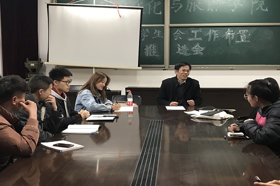 4月10号中午,历史文化与旅游学院在人合楼8414教室召开工作例会。本次会议由学生工作办公室主任蔡明举和学生会主席许梅主持,学生会各部门正副部长参加。本次会议主要是解决下周该院举办升国旗、春季运动会以及推进学风建设月系列活动这几个方面的问题。