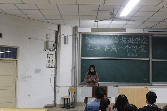 4月11日下午6:20,历史文化与旅游学院在人合楼8421教室举行21天好习惯养成—鲤跃龙门活动启动仪式,本次启动仪式由历史文化与旅游学院学生会举办,该院学生会心理部部长赵玉清、文艺部部长臧家瑶以及部分同学参加。