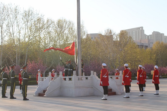 4月15日早,历史文化与旅游学院于行政楼前广场举办升旗仪式,该院党总支副书记李晓静、全体辅导员、学生党支部在校学生党员以及大一大二全体学生参加了此次升旗仪式。
