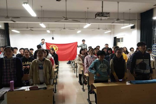 为了弘扬爱国主义精神,培养同学们作为共青团员奋发进取的精神风貌。潍坊学院数学与信息科学学院于4月26日晚,在人合楼举行了以“青春心向党,建功新时代”为主题的齐唱团歌活动,2017级和2018级的同学参加此次活动。