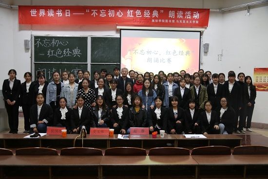为深入贯彻党的十九大精神,学习习近平新时代中国特色社会主义新思想,继承和发展中华传统文化,4月26号晚于齐贤楼2109教室举行以“不忘初心,红色经典”为主题的朗读活动,本次活动由图书馆主办,马克思主义学院承办。图书馆流通部主任史玉华、学生工作办公室主任赵静、马克思主义原理教研室主任侯国亮参加了活动。