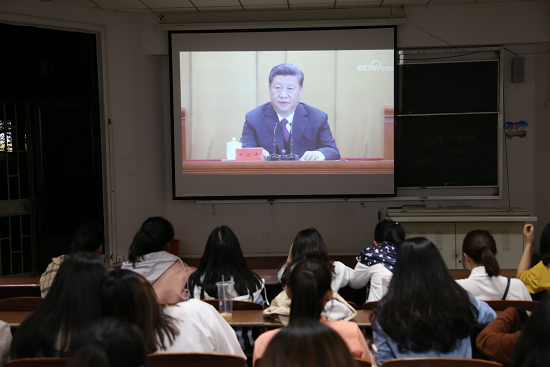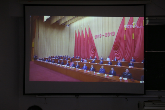 为传承五四精神,争做新时代新青年,潍坊学院马克思主义学院于5月4日晚上7点在齐贤楼2210教室观看“纪念五四运动100周年大会”实况回放。