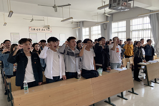活动伊始,播音与主持艺术1班团支书尹一宇带领全体团员青年重温入团誓词、面向团旗共唱团歌,同学们铿锵有力的声音,代表着他们无限的青春活力和坚定的理想信念。随后,全体团员青年共同观看学习了习近平总书记在纪念五四运动100周年大会上的重要讲话视频,从习近平总书记的讲话中,我们感受到了他对青年的殷切希望,观看结束后,大家纷纷表示要做有理想、有担当的新青年。