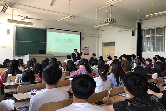 首先,杨教授给同学们讲解了美国在人才创新培养方面的一些值得借鉴的先进经验,以及美国高等教育体制的现况;随后,从管理制度创新、办学模式创新、教育理念创新三个方面解析了对我国高等教育的启示,鼓励高校在激烈的人才培养竞争体系中,激发高校开发多样化的人才激励制度。最后杨教授给同学们讲解了哥伦布州立大学教育现状,并且鼓励学生根据自己兴趣爱好、发展需求积极选择适合自己的专业发展方向,更好的成长为综合性素质人才。