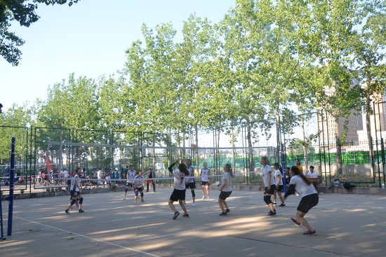 迎着烈日,比赛还未开始,排球场上早已人头攒动。参加比赛的同学和老师都激情饱满,摩拳擦掌的准备着热身运动。随着一声哨响比赛开始,只见法学院的老师们毫不紧张,展现出优秀的团队配合精神。老师们一次次的发球、拦球,每个动作、每个环节都配合的十分完美。观看比赛的同学们热情地为老师们加油鼓劲。老师们一路过关斩将,最终取得优异的成绩。学生组也展现出过人的风采,法学院女子排球队一上场就展开猛烈的进攻,队员们相互配合,技术娴熟。遇到实力强悍的对手毫不气馁,根据对手不断地调整战略,展现出我法学院学生永不放弃、随机应变的精神。最终法学院女子排球队取得了第七名的好成绩,成功为法学院增光添彩。