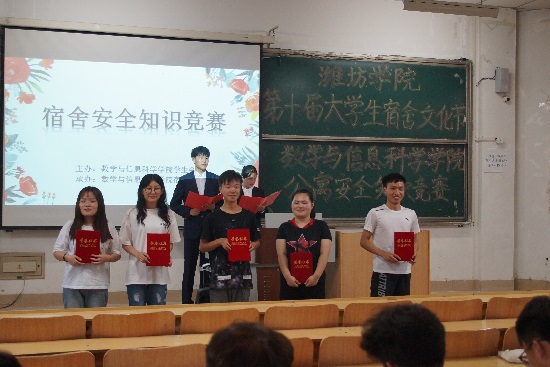 为了传播宿舍安全知识,弘扬宿舍安全文化,潍坊学院数学与信息科学学院于5月26日下午在人合楼8122教室举行“第十届大学生宿舍文化节”暨“公寓安全知识竞赛”活动,数学学院学生会各部长、2017级、2018级部分同学参与该活动。