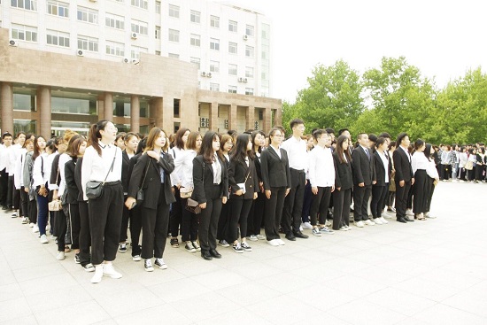 5月27日清晨,美术学院师生共聚学校办公楼前广场,举行“喜迎祖国七十华诞,争做新时代追梦人”主题升旗仪式。学院党总支副书记刘雪梅、学生工作办公室主任张芳芳、团总支书记江浩浩、全体辅导员和学生共571人参加。