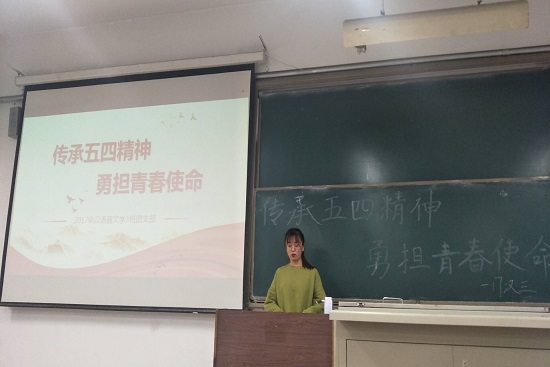 为培养同学们的五四情怀,弘扬五四爱国精神,激发同学们“为中华之崛起而读书”的爱国热情。5月27日上午,文学与新闻传播学院2017级汉语言文学3班团支部于6108举行了“ 传承五四精神,勇担青春使命 ”主题团日活动。