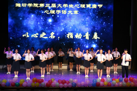 为加强大学生心理健康教育,丰富大学生心理文化活动,切实提高大学生的心理素质,使大学生更好的适应大学生活,潍坊学院于5月29日14:30在图书馆报告厅举办第三节心理健康节“以心为名,指动青春”心理手语大赛。本次大赛是由潍坊学院大学生心理协会主办,学校20个二级学院参加了此次比赛。