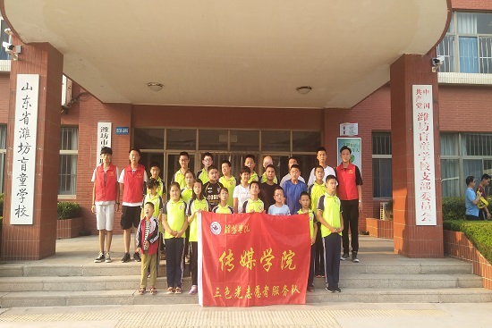 9月18日上午,传媒学院三色光志愿者服务队的志愿者们来到潍坊市盲童学校,为这里的孩子带来“光明影院”。“光明影院”是中国传媒大学电视学院为构筑一条彰显人文关怀、传播文化成果而设立的“文化盲道”,自2018年开始推出的项目,旨在为视障人士解读优秀影片。本次活动是为了让盲童学校的孩子们能够通过无障碍电影,感受到影视文化的魅力,提升他们的生活质量,满足他们的精神文化需求。