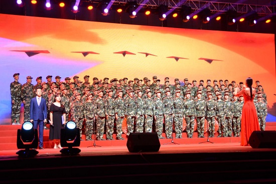 为庆祝中华人民共和国成立70周年,展现2019级新生的良好精神面貌和军训风采,潍坊学院于9月25日晚在行政楼后广场举行“我和我的祖国”2019级新生军训团合唱比赛。美术学院最终获得第7名的好成绩。