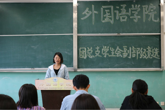 为进一步加强外国语学院学生会学生干部队伍建设,选拔一批政治坚定、作风过硬、素质全面的学生干部,外国语学院于9月26日在至善楼3231教室举行第十六届团总支学生会副部级竞选,团总支书记卢术强、第十六届团总支学生会主席团成员本着公平、公正、公开的原则对71位干事进行了选拔。