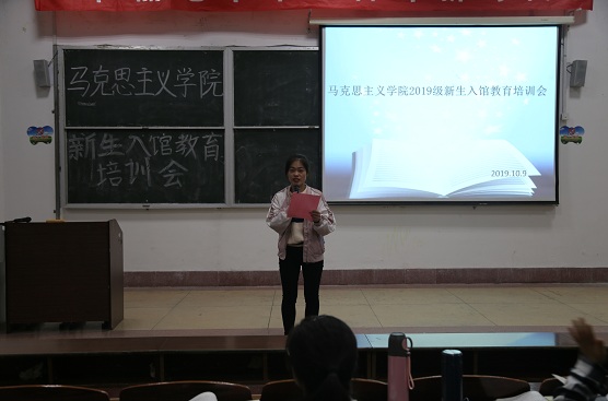 为尽快让新生了解和熟悉作为知识宝藏和信息中心的图书馆,掌握进入图书馆以及借阅书籍、预约座位等方法,提高学生的自学能力,促进专业学习。10月9日马克思主义学院在齐贤楼2109教室举办了新生入馆教育培训会。参加此次活动的有图书馆李老师、马院2019级全体新生。