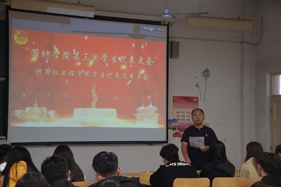 为认真做好代表选举工作,确保公平、公正、合理选举出计算机工程学院代表,保证潍坊学院第三次学生代表大会代表选举工作会议圆满成功举行,计算机工程学院于10月11日下午在天一楼204教室开展了潍坊学院第三次学生代表大会代表选举工作会议,本次会议由计算机工程学院团总支副书记肖甲波主持,计算机工程学院团总支委员、全体团支部成员以及各年级专业中选出的学生代表参与会议。