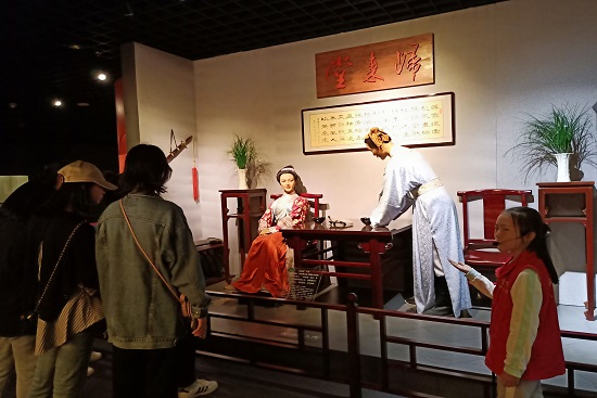 在活动组织者的引导下,同学们首先来到博物馆的一层。一层由小书斋、民俗厅、专题馆、腾云阁、碑碣长廊组成。从气势恢宏的古代战车到描绘精细的青铜方鼎、陶罐,再到各种栩栩如生的战争英雄人物,精美绝伦、制作精良的艺术品令同学们大开眼界,一本本古书和精美的瓷器更是让人爱不释手,啧啧称叹。在这里同学们了解到嫁娶风俗等多种古代民间风俗习惯,看到了古代人民对大自然最初的敬畏以及他们对于自然的热爱和探索。