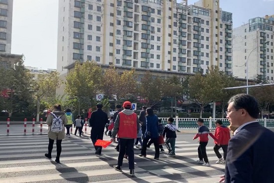 活动当天,志愿者们分成三个小队,分别在早、中、晚三个车流量高峰时间段对行人过马路进行文明引导服务。虽然天气寒冷,但是志愿者们依然热情高涨,马路上到处都是他们忙碌的身影。志愿者们手握指引旗,认真引导每一位行人过马路。看到有行人准备闯红灯时,便赶忙上前进行劝阻,并耐心的对其讲解有关交通安全的知识,俨然成为这个城市一道靓丽的文明风景线。引导过程中志愿者们积极认真的工作态度赢得了周围市民的一致好评。
