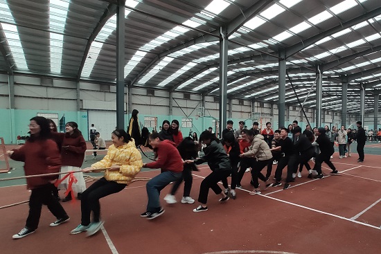 灰蒙蒙冬日里下着细细密密的小雨,依然阻挡不了大家对拔河的热情。“准备好了吗?开始!”一声令下后,篮球场瞬间淹没在震耳欲聋的呐喊声中,绳从腋下过,全体向后倾斜。有的班级初战失利,迅速调整战略部署,改换队形,再战而捷;“我们会是冠军。”有的班级所向披靡,越战越勇,在一致的口号与步伐下,始终带着胜利的笑容。女生们满脸坚定执着,麻绳勒得手疼,就用卫生纸垫着;男生们就算跌倒在地,眼镜滑下,磕到牙齿,也笑着爬起继续投入战斗。暴起的青筋,满头的大汗,一截麻绳凝聚着一班人的心,当一轮一轮比赛结束,大家累得瘫坐在地。付出过,努力过,重在参与,是每个人的心声。
