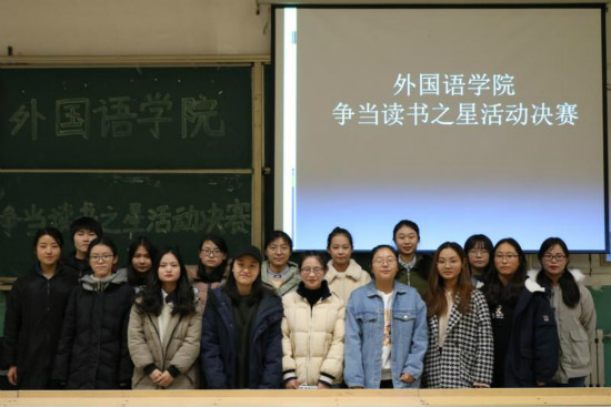 “书中自有颜如玉,书中自有黄金屋”,为提升外国语学院学生的精神境界,外院于11月28日晚7点在至善楼3237教室举办了争当“读书之星”决赛活动。活动由外学生会主席张宇航、副主席高文龙和大学生活动中心主任丁丽担任评委,初赛选出的11名选手参加本次比赛。