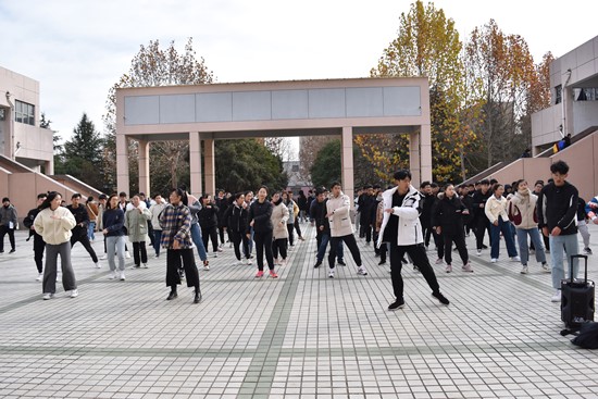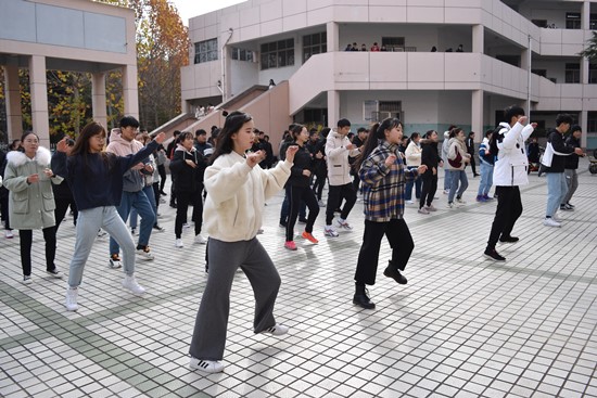 12月3日上午,同学们在致远楼门口集合完毕,活动正式开始。寒冷的天气并没有消散同学们心中的热情,他们依旧精神饱满、英姿勃发,在动感的音乐下,冒着寒风舞动青春。自11月19日开始同学们就积极准备此次活动。每天晚上七点,潍坊学院南门小广场上总会出现一群朝气蓬勃的学生。在文艺部成员认真的教学下,他们随着歌声,应着节奏,乐此不疲的练习,反复推敲动作,力求完美。在一遍遍的练习、推敲中,他们的舞姿从笨拙变得轻盈,从断断续续变得连贯优美。通过此次活动,磨练了同学们的意志,提高了团队凝聚力,彰显了建工不喊苦,不怕累的精神。