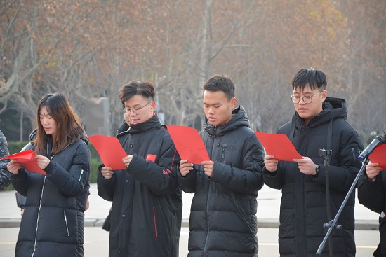 天还未亮,同学生们就已在行政楼前广场聚齐。虽然天气寒冷,但是依旧挡不住同学们积极参与升旗和宪法晨读的热情。早晨6点50分,迎着新升的朝阳,国旗护卫队迈着铿锵有力的步伐,整齐地走向升旗台。看着冉冉升起的五星红旗,同学们心中充满了自豪感。随后,王秀慧进行国旗下演讲,王秀慧指出宪法是国家的根本法,作为新时代的大学生更应该了解宪法和学习宪法。在社会实践中积极宣传宪法,在学习和生活中遵规守纪,培养良好文明习惯。随后,由学生代表汪旭演讲,他倡导同学们应该学宪法、尊宪法、守宪法,将其内化于心、外化于行,维护宪法权威。最后,各院系学生代表朗读宪法条文,更好地宣传宪法知识。本次活动得到了同学们的积极响应。