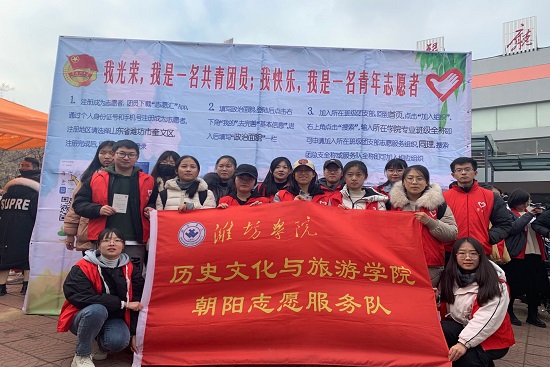 12月5日中午,历史文化与旅游学院朝阳志愿服务队参加了由潍坊学院团委主办、潍坊学院青年志愿者联合会承办的以“展青春志愿风采,绘潍大志愿蓝图”为主题的12.5国际志愿者日活动。
