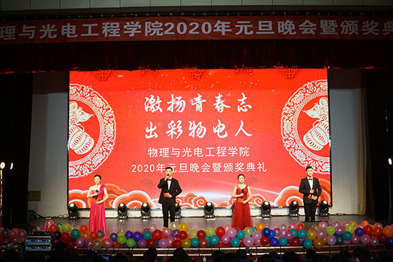 晚上,在全体与会师生的共同期待下,暖场视频率先放出,一个个奖项,真实有利地再现了物电学院在2019年取得的光辉成绩;一声声祝福,豪迈真挚地道出了全体师生新一年再创物电辉煌的信心。当“5、4、3、2、1”的倒计时在大屏幕上投现,元旦晚会主持人闪亮登场,引来了全场阵阵掌声,他们用动情的话语,向与会嘉宾发出了真诚的邀请,正式拉开了元旦晚会的序幕。