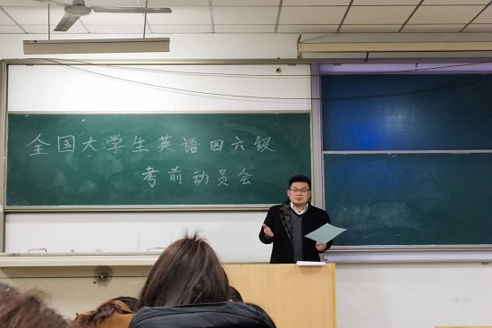12月11日晚,历史文化与旅游学院在人合楼8411教室召开全国大学生英语四六级考前教育会。本次会议由该院团总支副书记姚灵忠主持,2017级全体同学参加。
