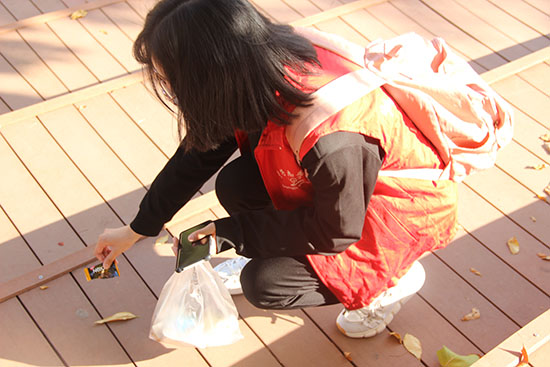 量子志愿者身着清一色的红色外套,排着整齐的队伍,前往潍坊市白浪河国家湿地公园。到达地点后,负责人将队伍分为两队在白浪河两岸捡拾垃圾,当志愿者们来到波光粼粼的白浪河畔时,不禁被这浩瀚的美景所吸引,但脚下的点点垃圾与美景显得格格不入。怀着对白浪河湿地环境的关爱,志愿者们不畏泥泞,纷纷走到河边弯下腰亲手捡拾垃圾,把烟头、塑料袋、饮料瓶等不易自然分解、对环境有害的垃圾装入垃圾袋。打扫公园卫生的环卫阿姨对志愿们一再称赞,尽管处于疫情大背景下,但是每一位志愿者不为艰难。通过志愿者们辛勤认真的工作,湿地的环境变得更加干净美好,令人向往。志愿者们也因为可以凭借自己的一份力量使湿地更加生机勃勃,而激动和开心。