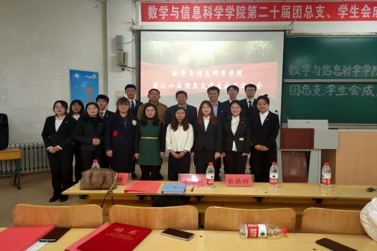 2020年11月1日上午,潍坊学院数学与信息科学学院第二十届团总支、学生会成立大会在人合楼8122教室顺利举行,出席此次大会的有数学学院党总支副书记郑栋鹏老师、团总支副书记王鑫莉老师、党总支组织员张德辉老师、辅导员张玉红老师和王慧婷老师。大会由辅导员吕静老师主持,第二十届学生会全体成员以及2018级、2019级、2020级各班班长和团支书参加。