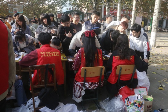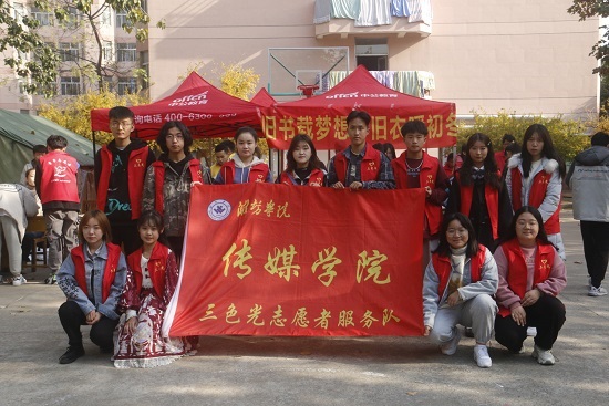 “涓滴之水成海洋、颗颗爱心变希望”。11月7日,传媒学院三色光志愿者服务队联合文学与新闻传播学院小橘灯志愿者服务队、物理与光电学院量子志愿者服务队、美术学院七色花志愿者服务队在社团文化广场发起“旧书载梦想,旧衣暖初冬”捐书捐衣活动。