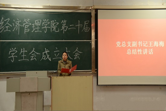 11月8日,经济管理学院第二十届学生会成立大会在致远楼201教室如期召开。出席此次大会的领导老师有:经济管理学院党总支书记郎益伟、副书记王海梅,团总支副书记于敏以及辅导员老师李金芳、刘波、焦祥嘉、黄晓品、郑翔、张亚萍。第十九届、二十届学生会主席团成员,第二十届学生会部分成员及2019级、2020级班长团支书参加此次大会。