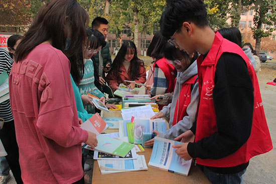 图书有价,情义无价。为弘扬“奉献、友爱、互动、进步”的志愿者精神,培养大学生的社会责任心和感恩之心,提升潍院学子的精神素养,11月14日物理与光电工程学院社会实践部联合美术学院七色花志愿者服务队在第二餐厅篮球场举行“小爱无声,图书义卖添真情”图书义卖活动。