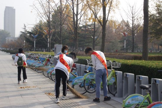为增强大学生的志愿服务意识,提高对公共场地的责任感和义务感,11月15日,体育学院爱心服务队在潍坊市人民广场进行“秋扫落叶、爱心替岗”社会实践活动。