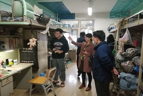 11月17日上午,历史文化与旅游学院党总支副书记李晓静,学生工作办公室主任蔡明举,辅导员刘海泉、于国,学生会负责人程清以及宿管部成员对历史学院各年级的学生宿舍进行了冬季安全卫生检查。