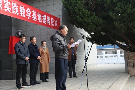 揭牌仪式上,刘勇院长首先向纪念馆领导的支持表示感谢。他指出,开展思政课实践教学活动是思政课教学体系中不可或缺的重要组成部分,是提高思政课实效性、感染力的重要途经。建国后毛泽东在青岛视察工作时,曾特意向山东党的负责同志讲起王尽美,说:“你们山东有个王尽美,是个好同志。”在王尽美纪念馆建立“思想政治理论课实践教学基地”,为师生参加社会实践活动提供了平台,能够充分发挥王尽美纪念馆在爱国主义教育和革命传统教育中的重要作用,不断丰富学校师生理论素养和业务知识,进一步提升学校思政课教学的针对性、吸引力,促使学校思想政治教育工作再上新台阶。
