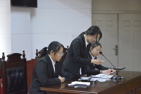 活动开始前,参赛人员与观看人员提前入场,遵守现场秩序,保持模拟法庭的庄严肃穆。下午,比赛正式开始。正反双方围绕着“社会秩序的维护主要靠法律还是道德”展开激烈的辩论。正方认为“社会秩序的维护主要靠法律”,法律与社会秩序唇齿相依,是国家权力机关制定的、由国家强制性予以实施的社会规范,保持社会协调运行。反方也不甘示弱,紧紧围绕“社会秩序的维护主要靠道德”的观点展开辩论,引经据典,好不激烈。