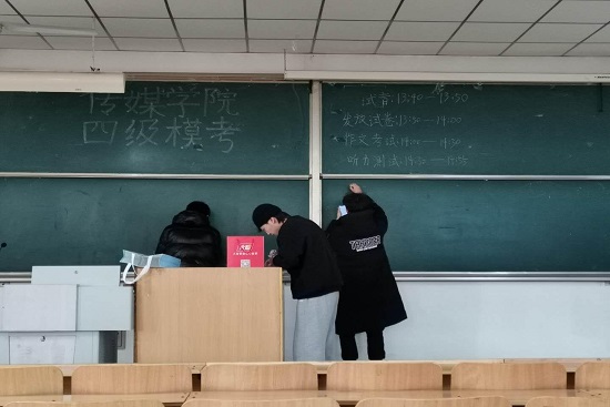 为帮助同学们适应大学英语四级考试节奏,熟悉考试题型与流程,缓解考前焦虑,把控考试时间,提高应试能力,12月5日下午,传媒学院在天一楼7312教室进行了大学英语四级模拟考试。此次考试由传媒学院学生会学风建设部负责监考工作。