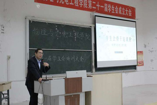 为了提高新一届学生会成员的工作能力,树立严谨正确的工作作风,物理与光电工程学院学生会于2021年11月7日下午在明正楼5109教室召开学生干部培训会。本次会议由2020级辅导员金波昌老师主讲,团总支副书记王振国老师、全体21届学生会成员参加。