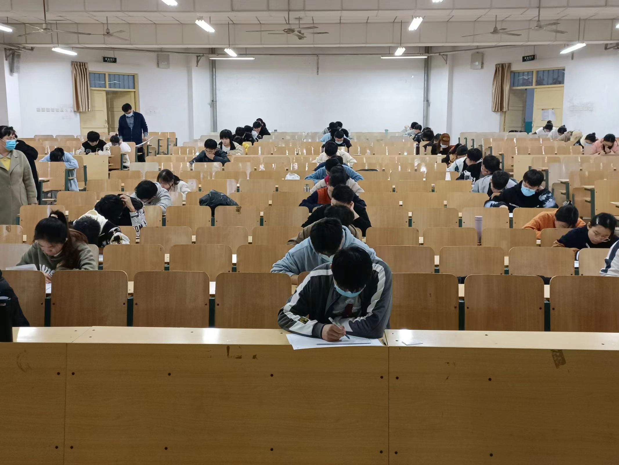 应疫情防控要求,同学们在规定入场时间持有48小时核酸阴性检测有序入场,并在竞赛期间全程佩戴口罩。本次竞赛以笔试的形式进行,分为数学专业组与非数学专业组竞赛,参赛对象为大学二年级及以上的在校大学生。本次竞赛题目设置难易结合,题型新颖创新,题目覆盖面广泛,以数学学科为主线的前提下,考察了学生的思维逻辑的严谨性和分析问题的全面性。参赛学子在规定的时间内认真审题、细心计算、从容答题,展现了潍院学子良好的学科素养和精神风貌。监考老师全程维持考场秩序,为学生提供良好的答题环境。