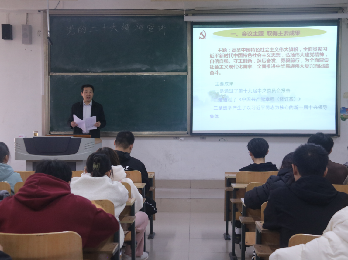 11月18日上午,学校学习贯彻党的二十大精神宣讲团成员、传媒学院党总支书记卢运山,在天一楼7407教室为所联系的班级——传媒学院2022级数字媒体技术(春季班)全体同学,作党的二十大精神学习宣讲。