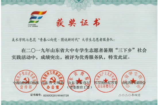美术学院(陈介祺金石书法学院)七色花志愿服务队,在近几年中组织参与了多次志愿活动,表现成果突出。