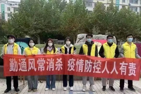 美术学院(陈介祺金石书法学院)“七色花”大学生志愿者服务队在潍坊市高新区新城街道锦城社区和翰林社区,开展“学习二十大精神 助力疫情防控”志愿服务活动,向社区居民宣传党的二十大精神,同时协助社区做好疫情防控工作。