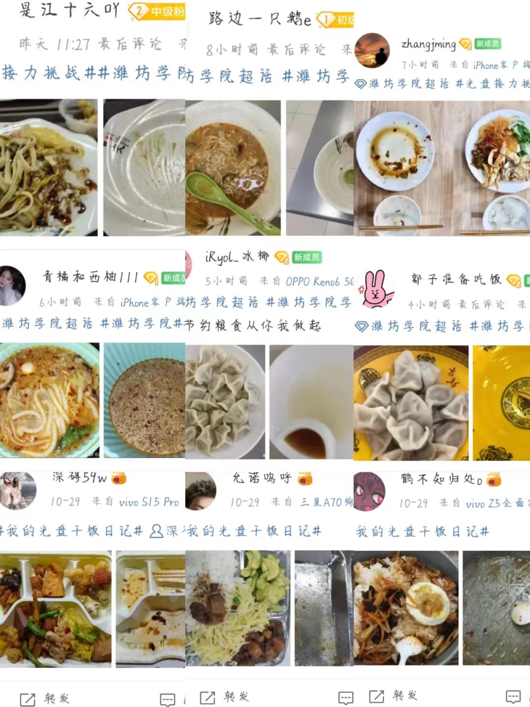 活动期间,团委依托到梦空间系统、新浪微博客户端,线上线下广泛宣传发动10000余名同学先后参与微博线上#光盘接力挑战活动#,记录#我的绿色生活#,打卡#我的光盘干饭日记#,线下“学习党的二十大精神,做节约粮食的践行者”主题签名活动,引导同学们用实际行动做好节约粮食的行动者、餐桌文明的示范者、拒绝餐饮浪费的宣传者,在全校营造了勤俭节约、节约粮食、避免浪费的良好风气。